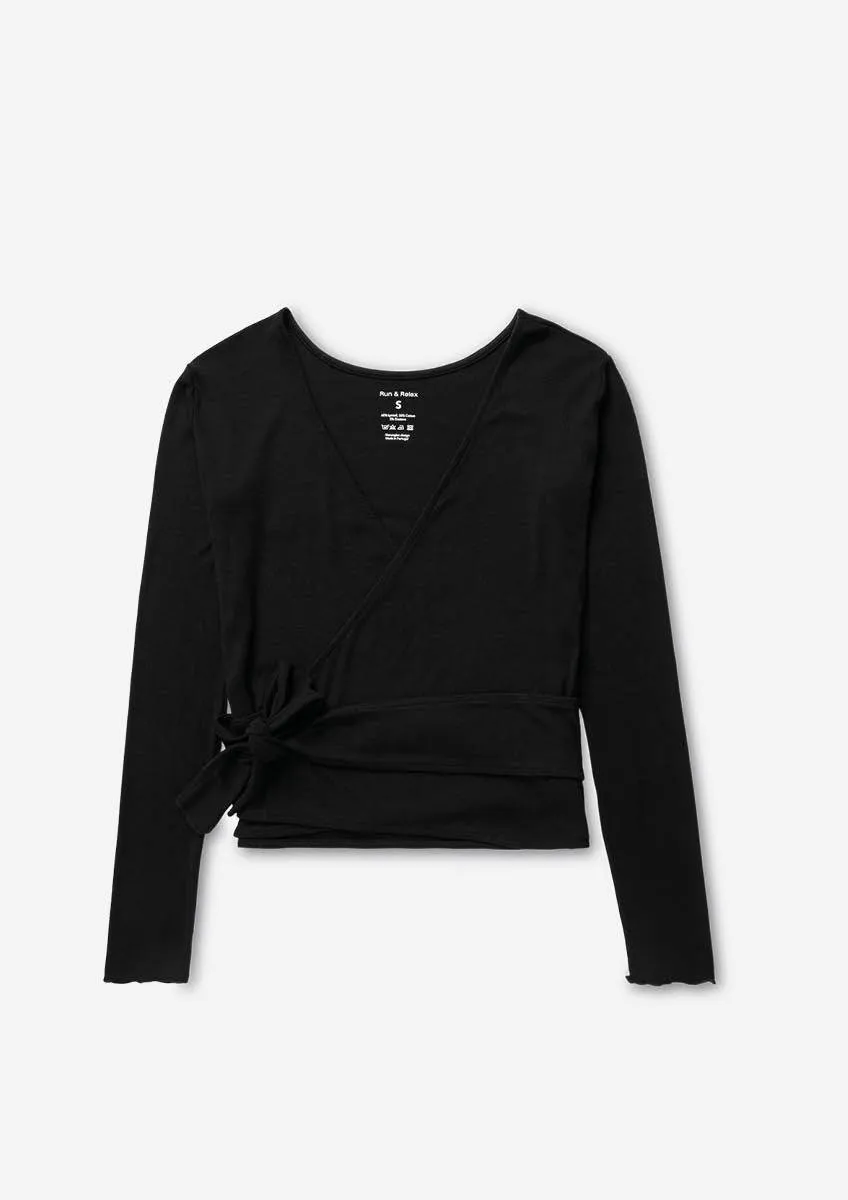Complete your yoga wardrobe with this beautiful wrap, designed with rib structure and slim fit. Comes with a belt in self-fabric to tie on front waist.